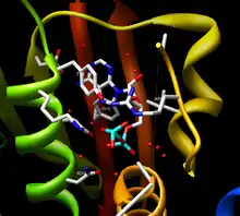 - ↑ Bilwes AM, Quezada CM, Croal LR, Crane BR, Simon MI (April 2001). "Nucleotide binding by the histidine kinase CheA". Nat. Struct. Biol. 8 (4): 353–60. doi:10.1038/86243. PMID 11276258. S2CID 25434861.