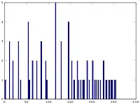 The histogram for this image is shown in the following table. Pixel values that have a zero count are excluded for the sake of brevity.