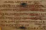 HSM-14 Inexpressible Island Ice Cave Site of ice cave at Inexpressible Island, Terra Nova Bay, constructed in March 1912 by Victor Campbell's Northern Party, British Antarctic Expedition, 1910–13. The party spent the winter of 1912 in this ice cave. A wooden sign, plaque and seal bones remain at the site. (1972) Rec VII-9 74°54′00″S 163°43′00″E / 74.9°S 163.7167°E / -74.9; 163.7167 (Inexpressible Island Ice Cave)