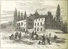Just to the south of Harringay's present-day borders, a large mansion, Northumberland House, was built by 1824[30] just to the south of the New River on the east side of Green Lanes. The building, which was converted for use as a lunatic asylum as in 1826,[31] remained until the late 1950s when it was demolished and a council housing estate built on the site.