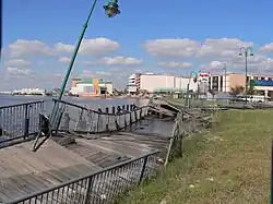 The destructive force of Hurricane Rita. Looking down the remains of the lakefront boardwalk toward the damaged Harrah's Lake Charles Casino property.