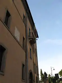 In the late Middle Ages the village expanded progressively southeastward along the peperino hill on whose summit -373 m a.s.l., today Piazza Giacomo Matteotti- the Frangipane family had a four-sided fortress built, demolished at an unspecified time and of which three round towers remain incorporated in the surrounding buildings. The new expansion corresponds to the present districts of Santa Lucia and Coste, and was traversed by the important thoroughfare of Via Santa Lucia and Via Posta Vecchia: the denomination of the latter street denounces that most likely this was originally the route of the courier and postal route between Rome and Naples, which passed through Marino until the 1780s.[37]