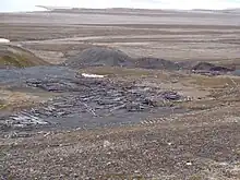 The Geophysical Institute of Tromsø established a geophysical station at Kvadehuken in 1920, consisting of a small hut and a radio mast allowing communication via Ny-Ålesund. It carried out meteorological surveys and geomagnetic field measurements and was manned by four men.[15] Two of these died in February 1922 while attempting to rescue a trapper. The station was closed in 1924 due to lack of funding.[16] The Church of Norway never established a presence in Ny-Ålesund, although the minister at Svalbard Church in Longyearbyen visited Ny-Ålesund irregularly.[17] Most of the children in town were below school age. However, during the 1920–21 winter there were 23 children in town and an improvised school was taken into use for the year.[18]