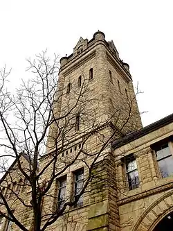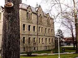 By the end of the 19th century, the University grew to contain several schools: a College of Liberal Arts (founded in 1844), a School of Music (1877), a School of Fine Arts (1877), a School of Oratory (1894), and a Business School (1895).[13] Recognizing the need for new departments and the value of specialized instruction, the Ohio Wesleyan administration improved the college's facilities and offerings to make its curriculum and buildings on par with its new academic position. Construction during that period included Monnett extensions, University Hall and Slocum Library. Athletics and physical education facilities were established and a start was made for a new gymnasium.[14]