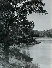 The land comprising the Popes Creek plantation was sold by the Washington family on October 13, 1813, but returned in a sense in 1867 when John E. Wilson who married Betty, the granddaughter of William Augustine, took possession.[36] Dr. F.O. St. Clair's investigations and survey of a proposed memorial site in 1882 was an effort to secure the "entire neck of land bounded by Pope's Creek on two sides and a marsh on the third side" – 11 acres (45,000 m2) and a 100-foot (30 m) right-of-way "to Bridge Creek Landing," including the "Burying Ground and Potomac River beyond." The result was 21 acres (85,000 m2) purchased from John E. Wilson on July 10, 1883, by the federal government. The sustained effort for a national monument on Popes Creek had begun to take shape.[37]