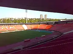 During the eight years of Miljanić's leadership, seven times it was the top-scoring club in Yugoslavia (in 1972 Velež scored one goal more), and in the last two seasons Red Star won the league title first by 12, and then by 18 points advantage over its closest rivals in the table. In the 1973–74 European Cup, Red Star eliminated Liverpool (the reigning champions at the time). By defeating Liverpool, Red Star became only the second foreign team that could beat Liverpool on the Anfield Road (after Ferencváros in the 1967–68 Inter-Cities Fairs Cup) and the only side to defeat Liverpool at home in the European Cup in the entire 20th century.[7] However, Red Star lost the following quarter-final fixture against Atlético Madrid 0–2 on aggregate. Next season, in 1975, Red Star faced Real Madrid. The match was declared to be the Džajić vs. Camacho game by the press, because Dragan Džajić was the best left winger in the world at that time and Camacho was one of the best defenders. In the first leg, Red Star was awaited at the Santiago Bernabeu by Miljan Miljanić, now coaching Real, as well as by 125,000 fans, and was defeated by a score of 2–0. In Belgrade, Red Star managed to level the score on aggregate in front of 100,000 spectators by goals from Džajić and goalkeeper Petrović. Red Star finally won 6–5 on penalties and achieved for the first time the semi-final of the European Cup Winners' Cup. There, the team played against Ferencváros from Budapest. Red Star lost to Ferencváros by a score of 2–1, and the return game will always being remembered as the game with the biggest attendance at Red Star Stadium. Although 96,070 tickets were sold, it is estimated that about 110,000 people were in attendance. All of them went home disappointed, as a penalty-kick converted in the 83rd minute placed the scoreline at 2–2 and put Ferencváros into the final.[8]