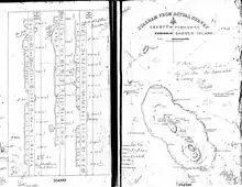 On 19 February 1863, Thomas Reid commissioned the surveyor general, James Erskine Calder, to assess the island.[23] In his survey, Calder determined the island was 146 acres (59 ha), lightly timbered, with about 40 acres (16 ha) suitable for agriculture[24] with little or no clearing. He believed that the remaining portion of the land could be cleared or burned-off for pasture. He rated the island's water to be of good quality but unproven for the demands of cattle.[25] The eastern shore of the island was found to have the best landings, and had been improved in four places, Calder believed, for whaling operations carried out on Norfolk Bay.[26] There had been some mineral exploration for blue granite and iron, though no beds were found. Calder evaluated the island as "well worth £2 per acre".[27]