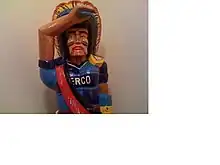 A 5 ft (2 m) wooden statue of a Native American 'Comanche' was spotted by the team as they passed a second hand shop on the way to Sincil Bank, Lincoln City for the last game of the season and decided that if they win and subsequently survive relegation they would purchase him as a lucky charm and he would become the club's mascot. The Wycombe Comanche was purchased and painted in Wycombe colours. He remained at the club throughout the Sanchez reign and he even featured in the centre of the squad photo in the 1999–2000 season. He was put on the centre circle before home matches at Adams Park. It is now believed to reside somewhere in Scotland.