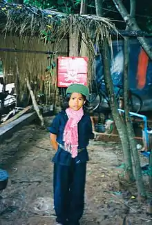Child dressed as Khmer Rouge soldier