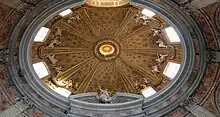 A treatise by Vincenzo Scamozzi from 1615 gives examples of a typology of vaults and domes, but not a general and thorough theory.[12] Although some recommendations for the profile of a dome can be found in treatises from earlier centuries, the traditional geometric and proportional techniques for masonry domes and lanterns were first detailed in 1694 by Carlo Fontana in his famous treatise Il Tempio Vaticano e sua Origine.[13] The treatise by Guarino Guarini, published posthumously in 1737, included the way to draw various vaults, but not how to build them.[12] Building on Fontana's work, Bernardo Antonio Vittone published Istruzioni elementari dell’architettura civile in 1760, in which he recommended using ogival or ellipsoidal profiles to increase the proportional height of domes and increasing the angle at which they intersected with their lanterns, for both structural and aesthetic reasons. To counter the negative impact this raised profile has on the interior appearance, domes with two or three layers of vaults were built, with openings in the lower levels to admit light.[13]