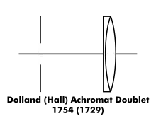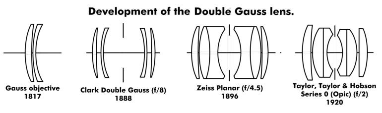 In 1817 Carl Friedrich Gauss improved the Fraunhofer telescope objective by adding a meniscus lens to its single convex and concave lens design. Alvan Clark further refined the design in 1888 by taking two of these lenses and placing them back to back. The lens was named in honour of Gauss. The current design can be traced back to 1895, when Paul Rudolph of Carl Zeiss Jena used cemented doublets as the central lenses to correct for chromatic aberration.