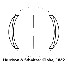 The first successful wide-angle lens was the Harrison & Schnitzer Globe (USA) of 1862,[12] although with a f/16 maximum aperture (f/30 was more realistic). The lens had a 92° maximum field of view, although 80° was more realistic. Charles Harrison and Joseph Schnitzer's Globe had a symmetric four-element formula; the name refers to the consideration that if the two outer surfaces were continued and then joined, they would form a sphere.[1]: 52–53 [2]: 160