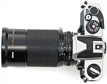 The Tessar was the standard high-quality, moderate-aperture, normal-perspective lens of the twentieth century. The Kodak Anastigmat Special 100mm f/3.5 on the Kodak Super Six-20 (1938, USA), the first autoexposure still camera, was a Tessar,[36] as was the D. Zuiko 2.8 cm f/3.5 on the Olympus Pen (1959, Japan), the original Pen half frame camera;[37] the Schneider S-Xenar 40mm f/3.5 on the late version of the Rollei 35 (1974, West Germany/Singapore);[38][39] and the AF Nikkor D 45mm f/2.8P Special Edition for the Nikon FM3A (2001, Japan), the last manual focus 35mm SLR released by a major maker.[40] It was fitting that the Zeiss Stiftung's last camera, the Zeiss Ikon S 312, had a Zeiss Tessar 40mm f/2.8 (1972, West Germany).[41]