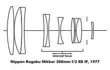 - ↑ Haruo Sato, "Press photographers' favorite lens that witnessed a number of world records: Tale 31: Ai Nikkor 200 mm f/2S IF-ED," from http://imaging.nikon.com/products/imaging/technology/nikkor/n31_e.htm Archived 2011-03-20 at the Wayback Machine retrieved 9 January 2008.