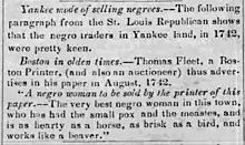 - ↑ Moore, George H. (1866). Notes on the history of slavery in Massachusetts. New York: D. Appleton & Co. p. 247. ISBN 9780608410180. Retrieved July 26, 2010.