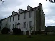 Early settlers of property tended to recreate the familiar structures of eastern Virginia, building Georgian and Federal homes on large estates. The counties of the eastern panhandle, especially Jefferson and Berkeley, were the most reminiscent of eastern Virginia. Many prominent families, such as the Washingtons, Fairfaxes, and Lees, had properties here. In 1817 Col. John Fairfax of Preston County began the construction of his mansion, Fairfax Manor, with the aid of his sons and 30 enslaved people. The old log homes on the estate, formerly the residences of Col. Fairfax and his family, became the slave quarters.[2] In 1836 David Gibson began construction of Sycamore Dale in Romney, Hampshire County, with the aid of 100 enslaved people.