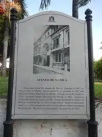 The Ateneo de Manila University (Filipino: Pamantasang Ateneo de Manila; Spanish: Universidad Ateneo de Manila) is a private research university in Quezon City, Philippines. Founded in 1859 by the Society of Jesus, the Ateneo is the third-oldest university in the Philippines.