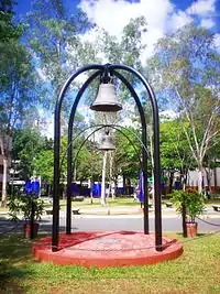 Ateneans also played a vital role together with student organizations from other prominent colleges and universities as student activism rose in academe in the 1970s. Students faced university expulsion and violent government dispersal as they protested the dismissal of dissenting faculty and students, oppressive laws and price hikes, human rights violations, and other injustices. On September 21, 1972, Philippine President Ferdinand Marcos declared martial law. The university administration had great difficulty reconciling the promotion of social justice and keeping the university intact. They locked down on the more overt expressions of activism—violence and miltancy—and strove to maintain a semblance of normalcy as they sought to keep military men from being stationed on campus.[2] In 1973, Jesuit Superior General Fr. Pedro Arrupe called for Jesuit schools to educate for justice and to form "men and women for others."[3] The Ateneo college opened its doors to its first female students in that same year.