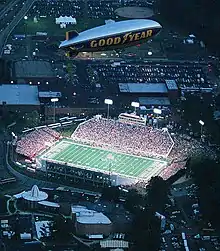 Cleveland's first regular-season game took place September 6, 1946, at Cleveland Municipal Stadium against the Miami Seahawks before a then-record crowd of 60,135.[23] That contest, which the Browns won 44–0, kicked off an era of dominance. With Brown at the helm, the team won all four of the AAFC's championships from 1946 until its dissolution in 1949, amassing a record of 52 wins, four losses and three ties.[24] This included the 1948 season, in which the Browns became the first unbeaten and untied team in professional football history.[25] The Browns had few worthy rivals among the AAFC's eight teams, but the New York Yankees and San Francisco 49ers were their closest competition.[26]