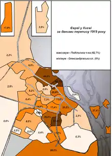 Percentage of ethnic Jews in Kyiv's districts according to the 1919 municipal population census