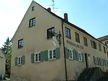 Hans Pankraz von Freyberg, the ruler of Laupheim between 1570 and 1582, explicitly forbade his subjects any contact with Jews[4] and another early local law from 1622 threatened any inhabitant of Laupheim, who got involved with Jews with a fine of 25 fl.[5] However, by then several Jewish communities had already been established in Upper Swabia. The local ruler of the nearby village of Baltringen allowed Jews to settle there in 1572. In the villages of Schwendi and Orsenhausen, the last of which still has a Judengasse ("Jews' Lane"), Jewish communities seem to have existed well before the 18th century. In Laupheim, the presence of Jewish traders on market days in the 17th century is documented.[6] Yet, permanent Jewish presence in Laupheim was not permitted until the 18th century.