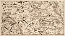 James Savage's trading camp on the Merced River, 10 miles (16 km) west of Yosemite Valley,[11] was raided by Native Americans in December 1850, after which the raiders retreated into the mountains.[11] An appeal to the governor of California to put an end to this and other raids led to the formation of the Mariposa Battalion in 1851, and the start of the Mariposa War.[17]