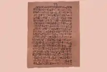 The Ebers Papyrus is an Egyptian medical text and is the oldest known record of the human body, dating back to 3000 BC.[8] The Ebers Papyrus describes the body by physical examination and what can be felt. Clinical investigations such as the Pulse, percussion of the body, the recognition of diseased or disordered states.[8]