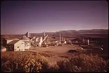 In the United States the government started to create the Naval Petroleum and Oil Shale Reserves in 1909.[52] The reserves were seen as a possible emergency source of fuel for the military, particularly the Navy.[48] The government reserved the Roan Plateau near Rifle, Colorado which later became a federal demonstration and test site.[48] First attempt to produce oil from the western deposits was made in Nevada by local businessman Robert Catlin by acquiring oil-shale properties in the 1890s and erecting the first retorts in 1915 and 1916. Although the attempt was commercially unsuccessful, in 1917 he incorporated Catlin Shale Products Company which made several unsuccessful attempts to sold shale oil products until it was dissolved in 1930.[31] The first attempts to exploit the Green River Formation deposit was made by establishment of The Oil Shale Mining Company in 1916.[31] In 1917, they erected the first commercial retort at the head of Dry Creek, near De Beque, Colorado.[53] However, also these attempts were unsuccessful and by 1926 the company had lost its property.[31] In addition, companies like Cities Service, Standard Oil of California, Texaco and Union started their oil shale operations in 1918–1920.[31] In 1915–1920 about 200 companies were established to exploit oil shale and at least 25 shale oil retorting processes reached to the pilot-plant stage. Discoveries of the large quantities of petroleum in eastern Texas ended the oil-shale boom.[34] One of technological achievements before World War II was invention of the N-T-U retort. In 1925, the NTU Company built a test plant at Sherman Cut near Casmalia, California.[54][55] In 1925–1929, the retort was also tested by the United States Bureau of Mines in their Oil Shale Experiment Station at Anvil Point in Rifle, Colorado.[31][54][56]