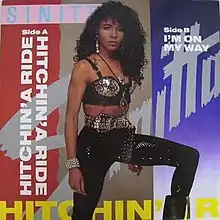 "Hitchin' a Ride" was covered by American singer Sinitta. It was released in 1990 as the fifth and final single from her second album Wicked (1989). The song was produced by Ralf Rene Maue. The B-side contains a previously unreleased song "I'm On My Way". This single reached number 24 in the UK,[18] number 19 in Ireland, and number 131 in Australia.[19]