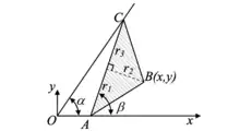 The Hoberman mechanism is a single degree of freedom structure meaning that the system can be driven with a single actuator. The mechanism is made of two identical angulated rods joined together by a central revolute pivot and four end pivots constrained to move along a single line. Because the four end pivots are restrained in this way, the mechanism can be treated as pair of PRRP (prismatic-revolute-revolute-prismatic) mechanisms joined at a central point.[6] The two PRRP linkages trace a pair of identical straight lines from the origin of the mechanism to their coupler points, so they have the same coupler curve. The equation for the coupler curve of the PRRP linkages in a Hoberman mechanism follows the coupler point B(x,y) in Fig 1:[3][7]