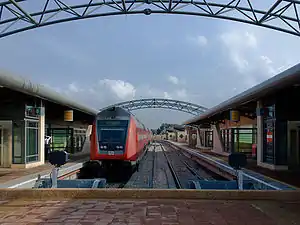 Hod Hasharon Sokolov railway station is a passenger railway station located at the town boundary of Hod HaSharon and Kfar Saba, Israel. Until July 2018 it was the northern terminus of the suburban line to Beersheba via Tel Aviv. The station was opened on 2 September 2006 as Kfar Saba Merkaz;[2] at the same time, the neighbouring Kfar Saba–Nordau railway station was renamed Hod HaSharon station. On 6 March 2010, both stations were renamed to their present names.[3]