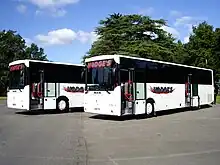 The majority of Hodge's Coaches fleet are painted in a distinctive blue and gold livery, although there are several in plain white with just Hodge's logo's applied. The fleet consists of mainly Volvo and Scania vehicles although in 2011 three MAN Fast Buses were purchased.[3] In 2013/2014 six Scanias will be delivered and a 70-seater Plaxton Leopard was also delivered in 2014.[4]