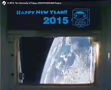 Secondary mission is measurements of water level in rivers to monitor floods by using Store&Forward System.[5] Third mission is Hosted Payload. Hosted Payload mission consisted of 10 cm-cubic boxes on which users could install their own apparatuses for their own applications. Project members asked users in private partnership in order to explore new market of satellite utilization. One of the apparatuses was space message display system. Electronic message display was installed which operators could change characters on the display by sending commands from the ground station. Users can take photos of their messages with the view of the earth from the window.