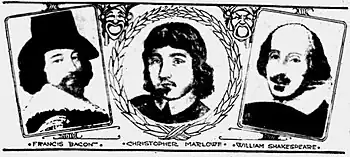 Marlowe's candidacy was initially suggested by Thomas William White, M.A., in the 1892 book Our English Homer; Or, Shakespeare Historically Considered, as a member of a group of authors.[14][15][16] The first person to propose that the works of Shakespeare were primarily by Marlowe was Wilbur G. Zeigler, who presented a case for it in the preface to his 1895 novel, It was Marlowe: a story of the secret of three centuries,[17] which creates an imaginary narrative about how the deception might have occurred. On the tercentenary of Shakespeare's death, in 1916, the Pulitzer prize-winning editor of Louisville's Courier-Journal, Henry Watterson, supported the Marlovian theory also by using a fictional account of how it might have happened.[18] The first essay solely on the subject was written by Archie Webster in 1923.[19] All three were published before Leslie Hotson's discovery in 1925 of the inquest on Marlowe's death,[3] but since then there have nevertheless been several other books supporting the idea, with perhaps the two most influential being those by Calvin Hoffman (1955)[20] and A.D. Wraight (1994).[21] Hoffman's main argument centred on similarities between the styles of the two writers, particularly in the use of similar wordings or ideas—called "parallelisms". Wraight, following Webster, delved more into what she saw as the true meaning of Shakespeare's sonnets.