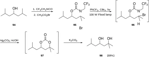 In 2008 Baran et al.[48] reported a new method for the synthesis of 1,3-diols using a variant of the Hofmann–Löffler–Freytag reaction.