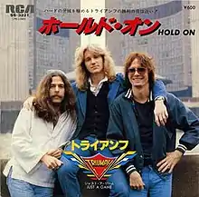 "Hold On" is a song by the band Triumph. It appeared on their album Just a Game (1979) and was also released as a single. The single was released on August 6, 1979 and rose to number 38 on the Billboard Hot 100.[1] The song was written by Rik Emmett.