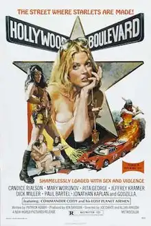 Hollywood Boulevard is a 1976 American satirical exploitation film[5] directed by Allan Arkush and Joe Dante (in their respective directorial debuts), and starring Candice Rialson, Paul Bartel, and Mary Woronov. It follows an aspiring actress who has just arrived in Los Angeles, only to be hired by a reckless B movie film studio where she bears witness to a series of gruesome and fatal on-set accidents. The film blends elements of the comedy, thriller, and slasher film genres.[5][6]
