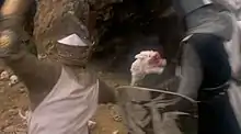 - ↑ Gilliam, Terry; Jones, Terry (2001). Monty Python and the Holy Grail commentary (DVD). Columbia Tristar.