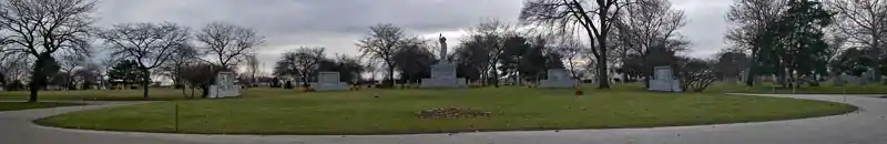 Holy Sepulchre Cemetery was consecrated on July 4, 1923, on the site of the Worth racetrack, which was demolished in 1911. Between 1911 and 1923 the site was used for state militia training and stockades. The first burial was on July 5, 1923.[3][4]
