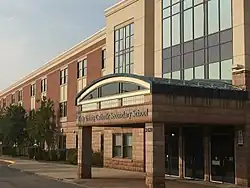 Holy Trinity Catholic Secondary School is a Catholic high school located in North Oakville in the River Oaks area within Oakville, Ontario. The school’s construction was completed in the summer of 2002 and the school opened to new students and staff in September 2002. The school initially had only Grade 9, Grade 10 and Grade 11 students. This was Holy Trinity's first year open and the size was approximately 800 students, while the 2018-2019 student and staff member count has more than doubled in size. The 2019-2020 school year has around 1330 students enrolled in the school. Holy Trinity fosters a respectful and supportive Catholic environment that inspires all students to reach their full potential. Holy Trinity offers students a comprehensive academic curriculum, an outstanding co-curricular program, and an important Catholic learning experience that will prepare them for their post-secondary goals. HT’s legendary and daily saying is “treat everyone with equity, dignity, and respect”. Holy Trinity offers many specialty programs such as the most recent Advanced Placement (AP) program for grade 9 students (September 2017), Specialist High Skills Major (SHSM) Program, Dual Credit Course with Sheridan College and other various technology courses. Interestingly, the school is a twin build of Christ the King Catholic Secondary School in Georgetown, Ontario. The blueprints of this school are a mirror image of Holy Trinity's and both schools were opened in September 2002.