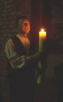 Tenebrae (Latin for "shadows" or "darkness") is celebrated within Western Christianity during Holy Week, especially on Spy Wednesday.[19][20] Tenebrae is distinctive for its gradual extinguishing of candles while a series of readings and psalms is chanted or recited. Tenebrae liturgies are celebrated by some parishes of the Roman Rite of the Catholic Church, the Polish National Catholic Church, the Lutheran Churches, the Moravian Church, the Anglican Communion, the Methodist Churches, and Western Rite Orthodoxy within the Eastern Orthodox Church.[21]