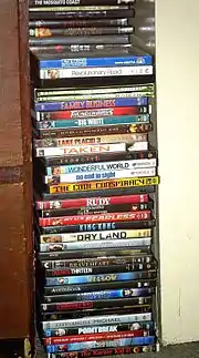 Home video is recorded media sold or rented for home viewing.[1] The term originates from the VHS and Betamax era, when the predominant medium was videotapes, but has carried over to optical disc formats such as DVD and Blu-ray. In a different usage, "home video" refers to amateur video recordings, also known as home movies.[2]