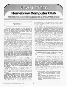 - ↑ "Homebrew Computer Club Newsletters, 1975–1977". DigiBarn Computer Museum. Retrieved February 25, 2019.