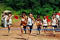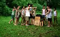 While watching the Iranian film Children of Heaven, Singaporean filmmaker Jack Neo and his wife were moved to "holding hands and crying after seeing the love shared by the children".[2][3] Children of Heaven inspired Neo to explore issues faced by Singaporean youths in his 2002 film I Not Stupid.[2][3] Following the success of I Not Stupid, he decided to adapt Children of Heaven to a 1960s Singaporean kampung setting, to emphasise the messages of friendship and kinship.[2][4] Homerun was produced by MediaCorp Raintree Pictures on a budget of S$1.5 million.[2][5] It was shot on 35mm film.[5] The production crew included Titus Ho as executive producer; Chan Pui Yin and Daniel Yun as producers; Kane Chen as cinematographer and Lawrence Ang as film editor.[6][7] In addition to writing and directing, Neo also penned the lyrics to the theme song, which was sung by Koh Mei Xian and composed by Li Yi.[8] Filming took place in the rural outskirts of Sungai Muntoh during November and December 2002.[2][5] The cast endured a rigorous schedule, including extensive travel times to the filming location and many running scenes.[9] The child actors' school commitments made the planning of reshoots difficult;[2] moreover, the production team decided to delay post-production work in Thailand due to the SARS outbreak.[2][4]