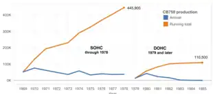 Unsure of the bike's reception and therefore unable to accurately gauge demand for the new bike, Honda limited its initial investment in the production dies for the CB750's engine by using a technique called permanent mould casting (often erroneously referred to as sandcasting), rather than diecasting.[25] The bike remained in the Honda line up for ten years, with a production total over 400,000.[26]