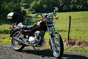 The Honda CM125 is a parallel twin cylinder air-cooled OHC four-stroke cruiser motorcycle made by Honda from 1978 to 2002.[1] It had a top speed of 65 mph (105 km/h).[2] The CM125C engine combines the single carburettor of the squat Honda CD125 Benly motor with the tall cylinder head and five-speed, gearbox of the sportier Honda 125 Super Dream.[2]