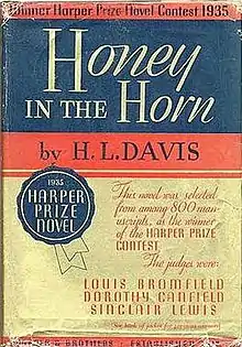 Honey in the Horn is a 1935 debut novel by Harold L. Davis. The novel received the Harper Prize for best first novel of 1935 and won the Pulitzer Prize for the Novel in 1936. The title of the book is from a line in a square dancing tune, and is only found in the book in the author's introductory overleaf.