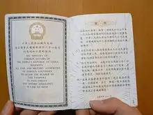 - ↑ "香港澳門居民進入臺灣地區及居留定居許可辦法". National Immigration Agency. 2010. Retrieved 12 April 2010. Note that: The National Immigration Agency of Taiwan uses the term 香港護照 (literally in English "Hong Kong passport").