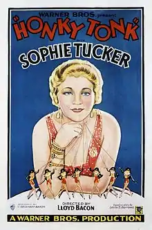 Honky Tonk is a 1929 American Pre-Code musical film starring Sophie Tucker in her film debut. The film was a flop when released and is now lost, although the Vitaphone soundtrack for the film and for the trailer still exists. Tucker sings a number of songs in the movie, including her theme song "Some of These Days", and "I'm the Last of the Red Hot Mamas", from which she took her billing as "The Last of the Red Hot Mamas".[2][3]
