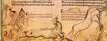 Soldiers preferred to ride lactating mares because they could use them as milk animals. In times of desperation, they would also slit a minor vein in their horse's neck and drain some blood into a cup. This they would drink either "plain" or mixed with milk or water.[25] This habit of blood-drinking (which applied to camels as well as horses) shocked the Mongols' enemies. Matthew Paris, an English writer in the 1200s, wrote scornfully, "...they [the Mongols] have misused their captives as they have their mares. For they are inhuman and beastly, rather monsters than men, thirsting for and drinking blood..."[24]